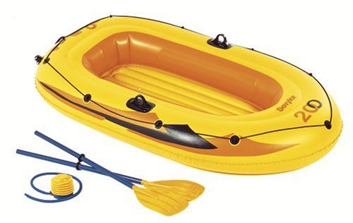 A complete boating kit for less! Sevylor Sunburst 2 - Person Pool Boat Kit with Air Pump and Oars. Fun in the sun for two! This Sunburst 2-Person Pool Boat is made with Sevylor's high quality construction for durability. The kit comes complete with an air pump and oars, to get you afloat right away. Now, it's priced right so everyone can own a Sevylor inflatable. Features include: 2 strong molded oar locks; 3 air chambers (1 in the boat and 2 in the floor); All-around grab line for convenience; 2-person, 300 lbs. capacity; Length overall 6'7", beam 3'10"; Weighs 7 lbs.; Model # SB200K; Don't wait... they're moving fast! Order Today! Sevylor Sunburst 2-Person Pool Boat Kit, Yellow